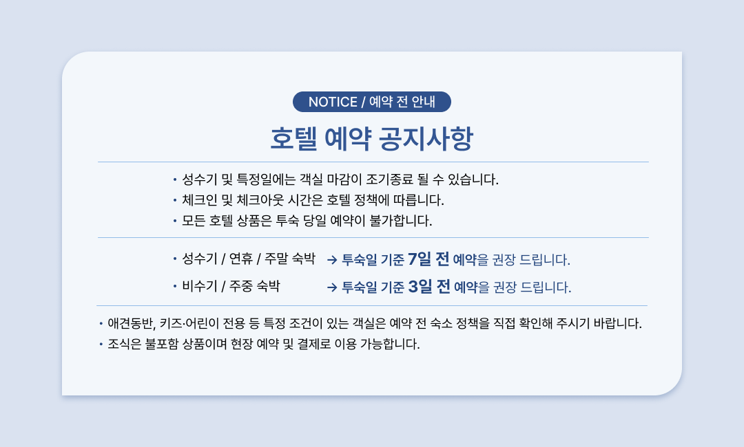 글로벌 호텔 브랜드의 기준에 맞춘 표준화된 서비스는 숙박 전반에 신뢰를 더합니다.