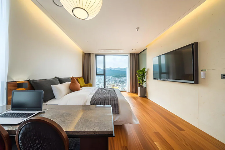 객실은 단정하면서도 분위기 있는 무드로 꾸며져 짧은 여행은 물론 반복 숙박에도 잘 어우러집니다.