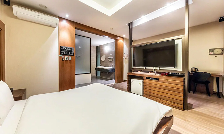 객실은 단정하고 깔끔한 컨디션으로 관리되어 단기 숙박은 물론 반복 숙박에도 무리 없이 어우러집니다.