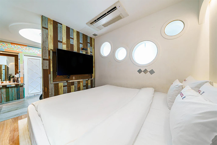 객실은 단정하면서도 감각적인 무드로 꾸며져 짧은 숙박은 물론 반복 숙박에도 잘 어우러집니다.