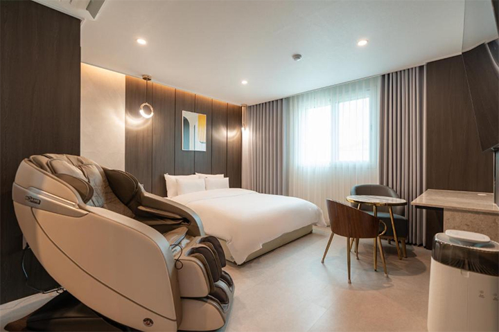 객실은 단정하면서도 감각적인 무드로 꾸며져 짧은 숙박은 물론 반복 숙박에도 잘 어우러집니다.