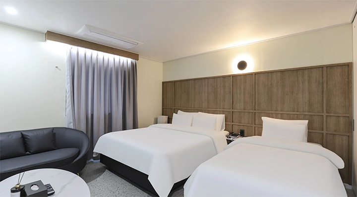 객실은 단정하고 깔끔한 컨디션으로 관리되어 짧은 숙박은 물론 반복 숙박에도 부담 없이 어우러집니다.