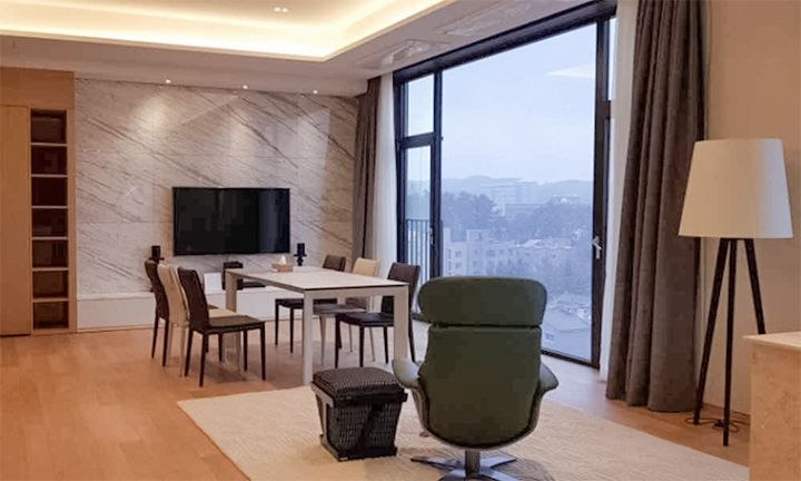 객실은 단정하면서도 부드러운 감성으로 꾸며져 짧은 숙박은 물론 반복 체류에도 잘 어우러집니다.